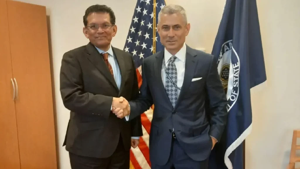 ওয়াশিংটন ডিসিতে শুক্রবার মার্কিন পররাষ্ট্র দপ্তরের রাজনৈতিক বিষয়ক আন্ডার সেক্রেটারি অ্যালিসন হুকারের সঙ্গে এক বৈঠকে এ অনুরোধ জানান তিনি।