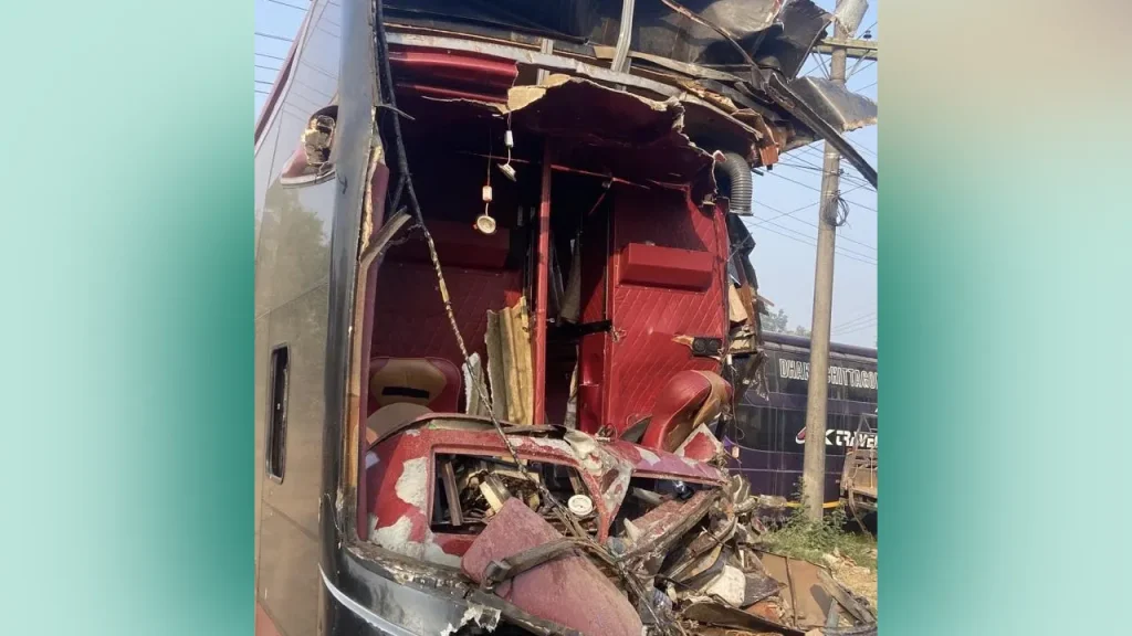 প্রত্যক্ষদর্শীরা জানান, ভোরে নোয়াবাজার এলাকায় ঢাকাগামী শ্যামলী স্লিপার বাসটি চলন্ত অবস্থায় সামনে থাকা গ্যাস সিলিন্ডারবাহী ট্রাকের পেছনে ধাক্কা দেয়। এতে বাসের সামনের অংশ দুমড়েমুচড়ে যায়। ঘটনাস্থলে বাসের সুপারভাইজার নাহিদসহ পাঁচজন আহত হয়। ফায়ার সার্ভিস ও স্থানীয়দের সহায়তায় আহতদের উপজেলা স্বাস্থ্য কমপ্লেক্সে নিয়ে গেলে চিকিৎসাধীন অবস্থায় মারা যান নাহিদ।