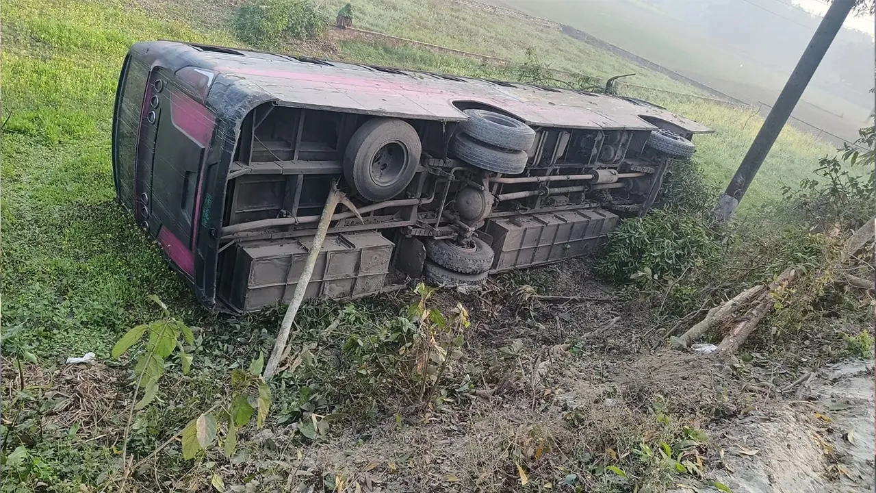 রাজবাড়ীর পাংশায় নিয়ন্ত্রণ হারিয়ে ৩৩ যাত্রী নিয়ে একটি বাস সড়কের পাশে উল্টে গেছে। এ ঘটনায় অন্তত তিন যাত্রী আহত হয়েছেন। বৃহস্পতিবার (২২ জানুয়ারি) সকাল সাড়ে ৭টার দিকে রাজবাড়ী-কুষ্টিয়া আঞ্চলিক মহাসড়কের উপজেলার মৈশালা বাসস্ট্যান্ডের পাশে এ দুর্ঘটনা ঘটে।