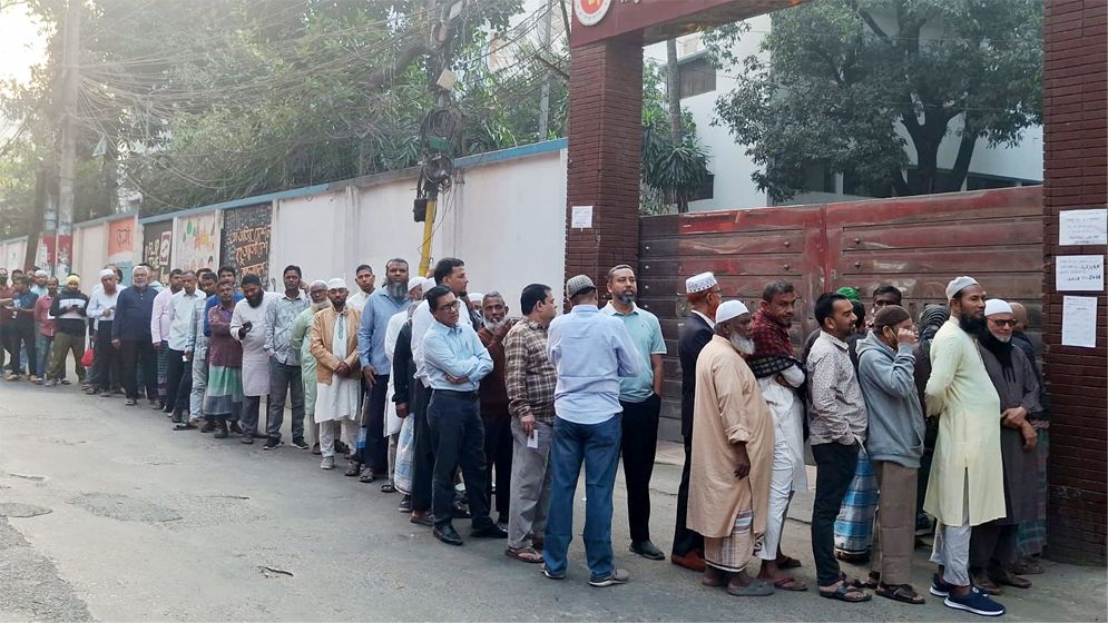 ত্রয়োদশ জাতীয় সংসদ নির্বাচন ও গণভোট চলছে। বৃহস্পতিবার (১২ ফেব্রুয়ারি) সকাল সাড়ে ৭টায় সারাদেশে ভোটগ্রহণ শুরু হয়েছে, যা বিকেল সাড়ে ৪টা পর্যন্ত চলবে। এর মধ্যে ভোট দিতে কেন্দ্রের সামনে জড়ো হচ্ছেন মানুষ। তার মধ্যে অনেকে কেন্দ্রে নির্ধারিত সময়ের আগেই ভোটাররা কেন্দ্রে হাজির হন। কোথাও কোথাও ভোটারের লাইন দীর্ঘ হতে দেখা গেছে।